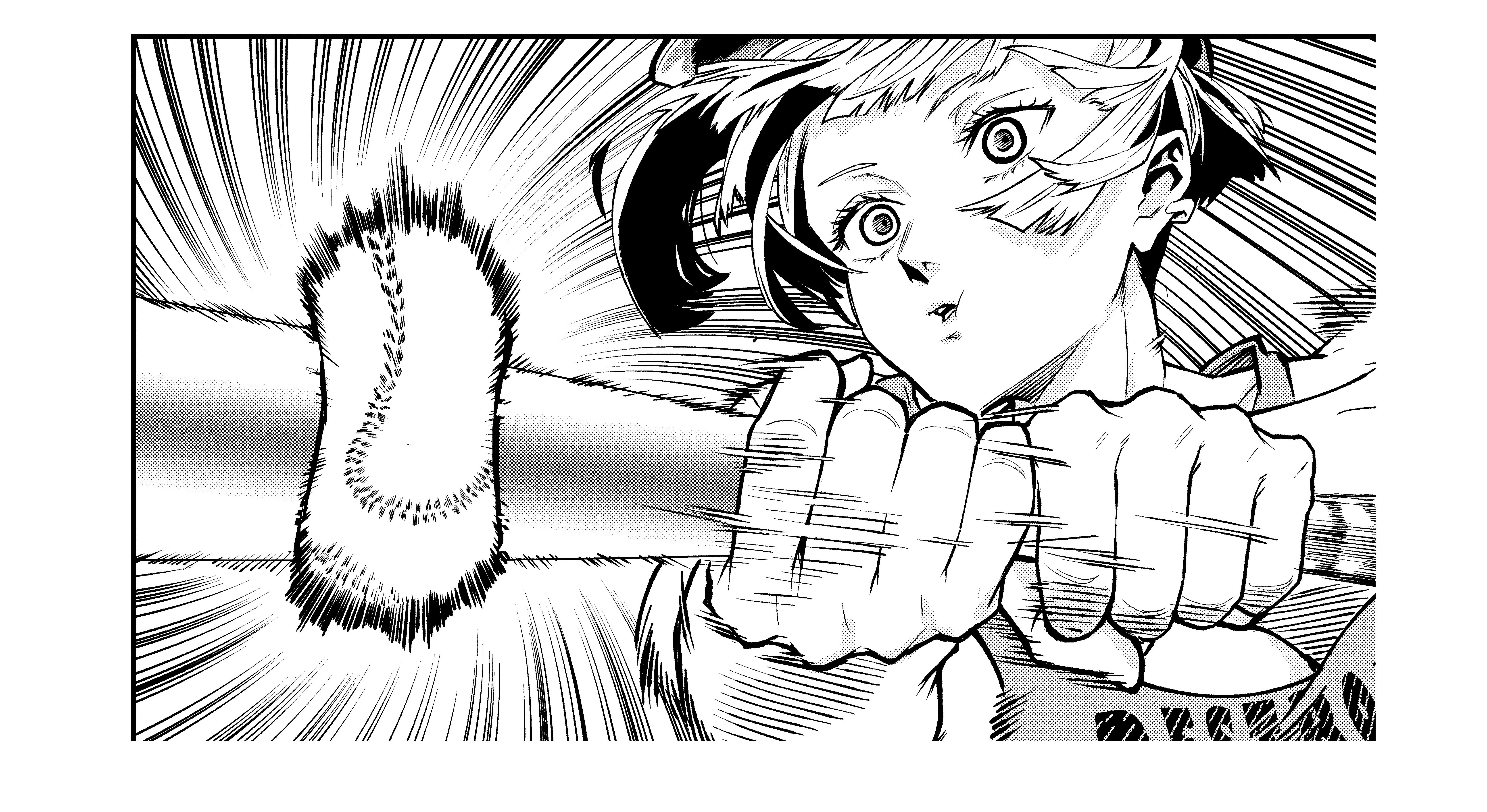 春夏冬画楽(以下、春夏冬) 『ジャンプ+』は読者の方が朝起きてすぐに読んでくれることが多いので、頭がまだ働いていない状態でも内容が入ってきやすいように、できる限り自分でもチェックしています。まだまだ拙(つたな)い絵だと自覚しているので、「せめて読みやすさだけは...!」..。それでも、大先生達の作品と比べたらまだまだなんですけど。だから川島さんに「読みやすかった」っていう言葉をいただいたのがすごく嬉しかったです。ありがとうございます!
