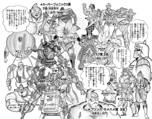キン肉星王位争奪編も終盤戦というこのタイミングで発表された超人たちは、これまでだと次の新シリーズで大活躍していくというのがお決まりの流れでしたが...読者のみんなも薄々感じているように、この時点では『キン肉マン』にもう次のシリーズはありません。じゃあ彼らはどうなるのか。しかし道はありました。ここから10数年後、ここで発表された超人たちは『キン肉マンⅡ世』の初期を彩るメンバーとなって再び世に出ることになったのです。名前はそれぞれ変わりましたが『Ⅱ世』での彼らの活躍、未見の人にはぜひ注目してもらいたいところです!
