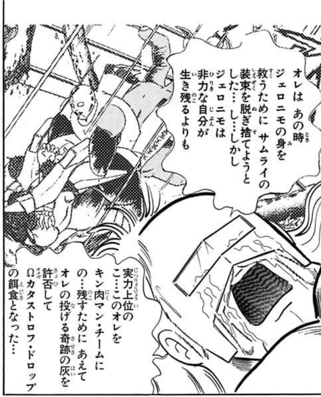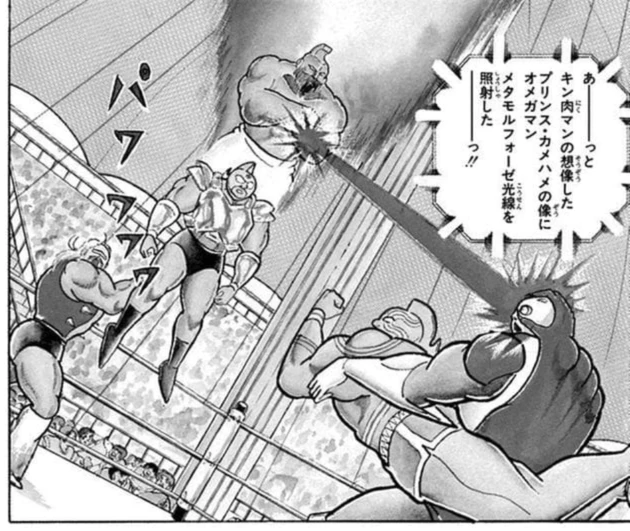 キン肉マンの思い描いた最強の相手にオメガマンが変身する。これが、バッファローマンでも悪魔将軍でもなく、プリンス・カメハメだったというのがまた面白いし、演出的にも神がかっていますよね。