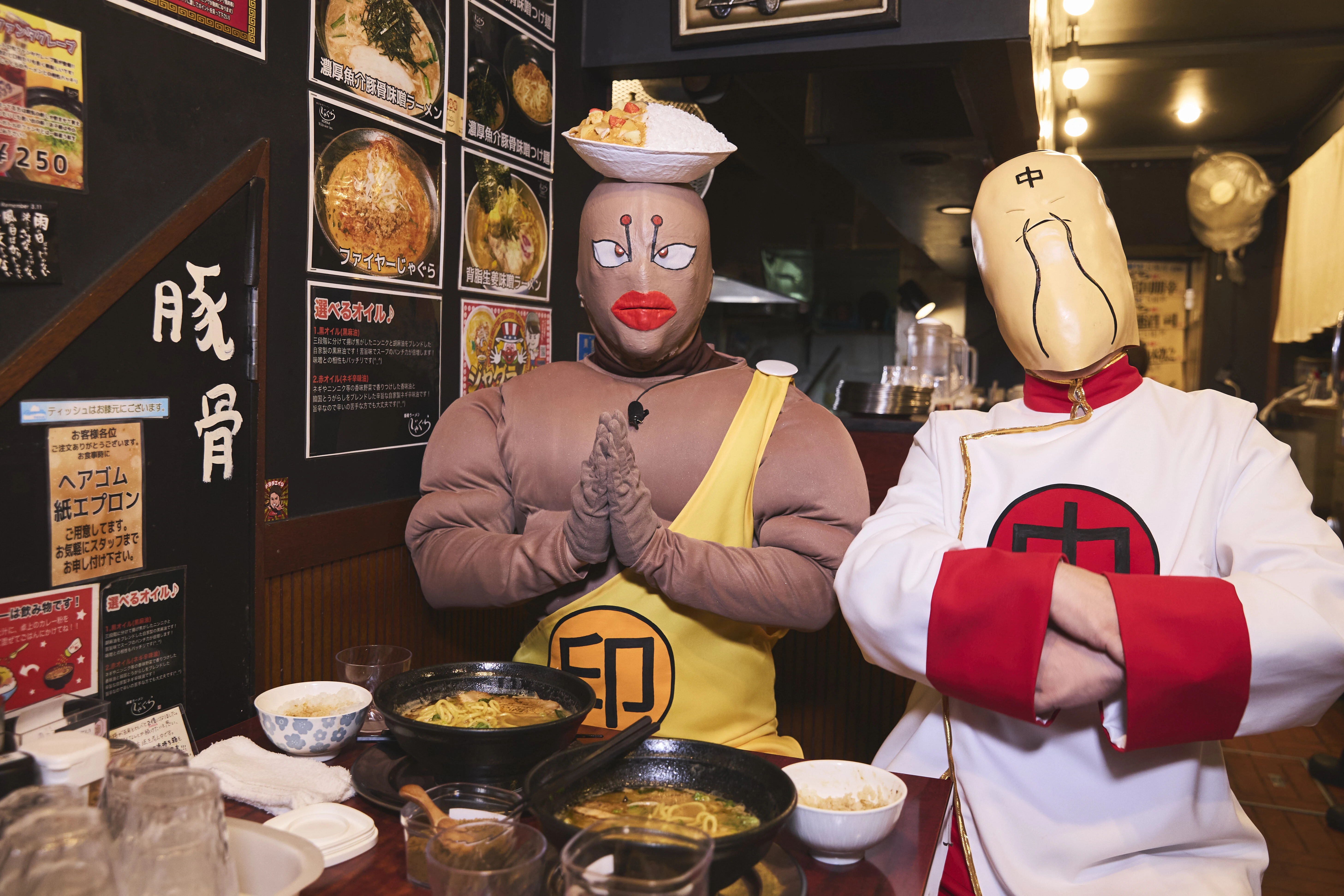 濱口 最初、おでこにラーメンマンの「中」を描いて歩くんかなと思ったら、完全なコスプレ(笑)。マスクまでかぶって、完全にラーメンマンとしてロケしてました。