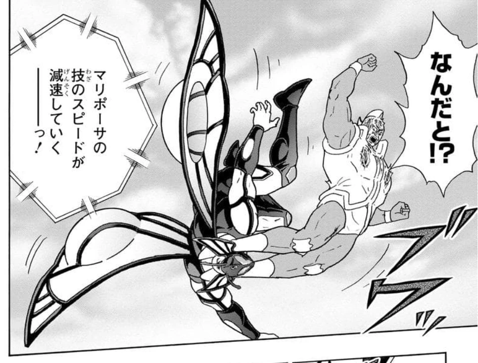 パピヨンマンは、飛翔の神を宿したマリポーサさえ圧倒的な力でねじ伏せた(JC85巻掲載)