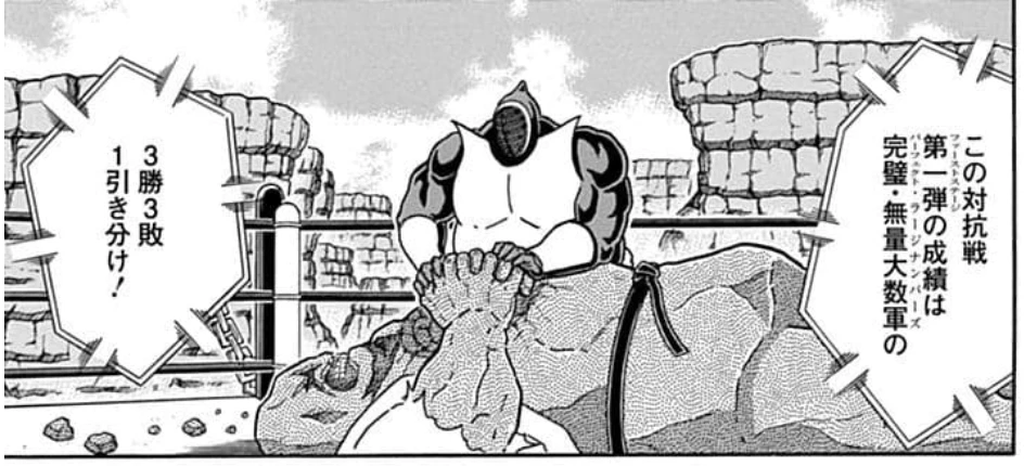 こうして、VS完璧・無量大数軍の第一ラウンドは幕を閉じましたが、改めてステカセキングVSターボメンから始まった「悪魔超人VS完璧超人」の団体戦。キン肉マンの復帰戦も含めて、全試合文句なしの名勝負でした...!! それでいて、この団体戦がこれからも続く長い闘いのプロローグに過ぎないとは、魂の汗を拭うヒマすらありません...!!