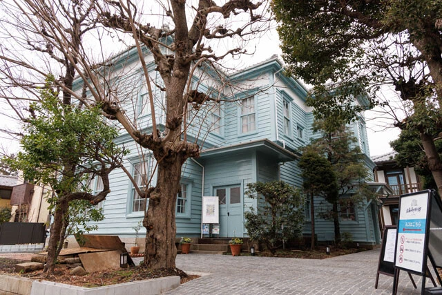 1888年に麻布に建てられ、1933年に豪徳寺に移築された旧尾崎テオドラ邸。シンプルだが重厚感が漂う、世田谷区の閑静な住宅街にたたずむ青い洋館が、それだ。