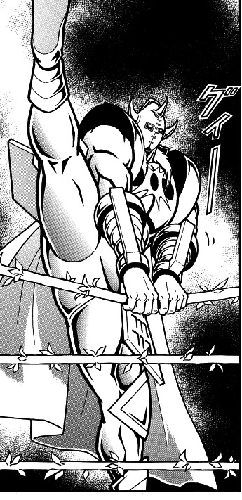 草木一本も生えない、真実の超人墓場に降り立った悪魔将軍。さっそく襲ってきた鬼たちを蹴散らしながら悪魔将軍は"禁断の石臼(モルティエ・デ・ビレ)"をなんと逆に回し始めます。その様子を見守る鬼たちは、悪魔将軍が取っ手を持ったら「取っ手を持った!」、逆に回し始めたら「逆に回し始めた!」と、いちいち抜群のリアクションをしてくれます。