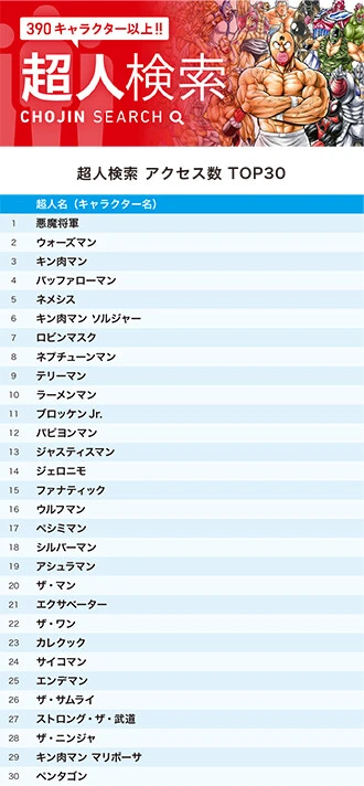 また、ゲームアプリ『キン肉マン 極・タッグ乱舞』に登場したジャスティスマン(18位 →13位)、ザ・サムライ(圏外→26位)も人気上昇中。アプリで初めて知った人や、久しぶりに思い出した人はもう一度チェックを!