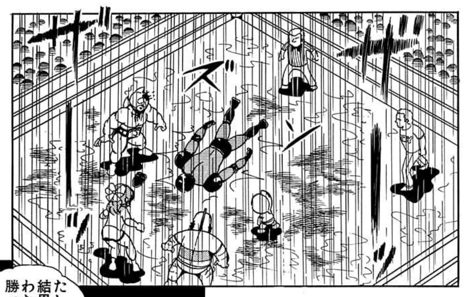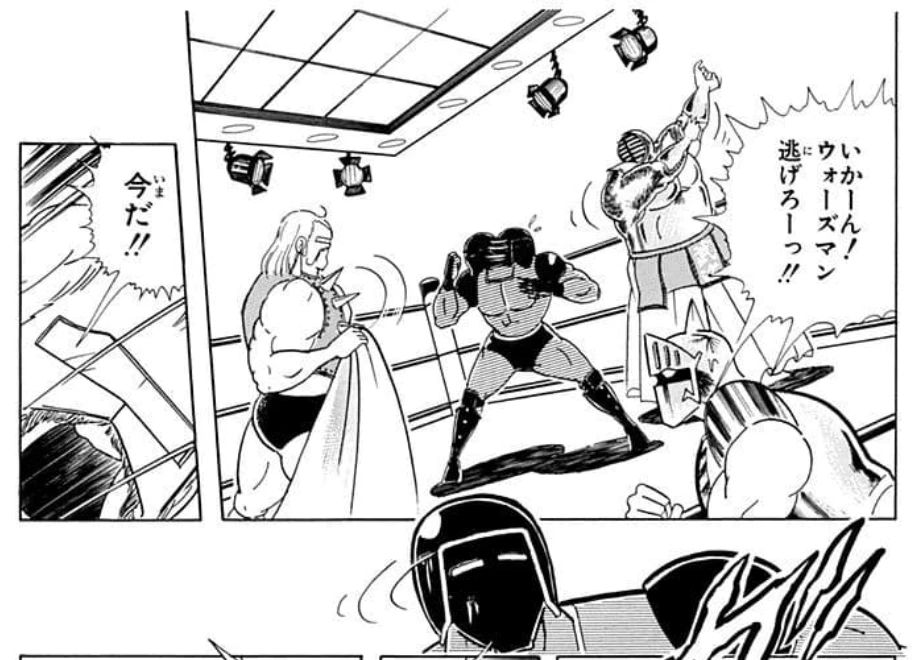 A ヘル・ミッショネルズ(ネプチューンマン、ビッグ・ザ・武道組)にボコボコにやられてしまった時も「わざとか」ってぐらいウォーズマンを小さく描いてる気がするんですよね。