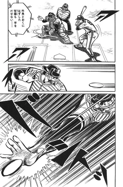 急遽マウンドにあがった鳴海が投じた一球は、短い指の握りが作用して落ちる球となり、阪神・田淵のバットは空を切った(©竜崎遼児/集英社)
