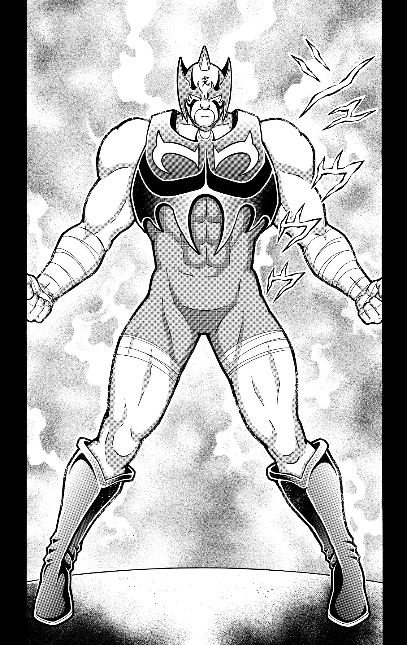 ミラージュマンの洗礼を受け、完璧超人に生まれ変わったネメシス。ページに渡る変身シーンは必見!