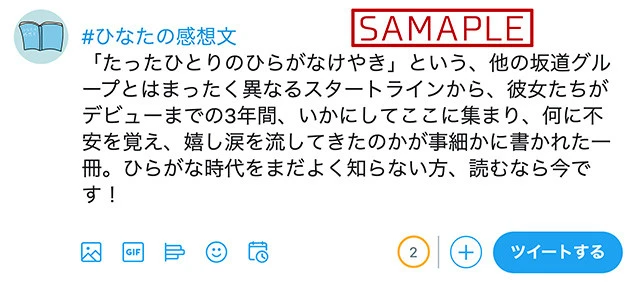 ②ハッシュタグ「#ひなたの感想文」を添えて、感想文を140字以内でツイート