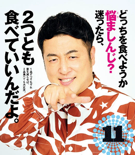 「どっちを食べようか悩(なや)ましんじ? 迷ったら、2つとも食べていいんだよ」