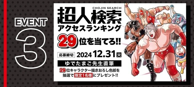 正解者の中から抽選で1名様に29位キャラクターの"ゆでたまご先生描きおろし色紙"をプレゼント!!