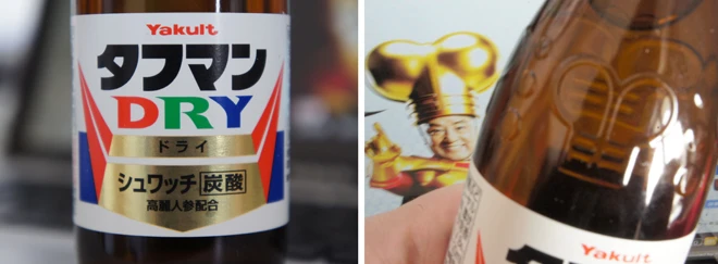 --では、ちょっと飲んでみましょう。これ、すんごいフルーティー! ネーミングは破壊力がアリアリなんですけど、『ヤクルト400』の優しい口当たりと、タフマンならではの高麗人参フレーバーがキセキの大融合! 新感覚なドリンクに仕上がってます。これは『ヤクマンDRY』も試したくなりますね。