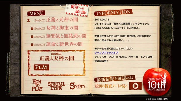 人気漫画「DEATH NOTE」の脱出ゲームがiPhone,iPad版、Android版ともに無料でリリース!まずは第1弾「正義と天秤の間」を脱出せよ!