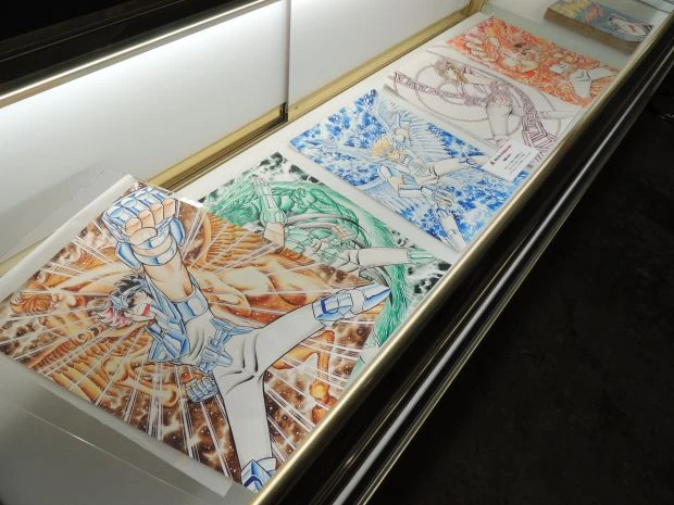 会場内は作品別にショーケースが並べられており、カラー原画が多い「聖闘士星矢」には多くの人だかりができているが、一方でマニアならぜひとも見ておきたいのが「男坂」だ。