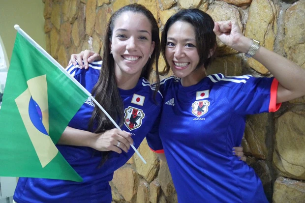 【This week's Blue】 今週はもちろん、サムライブルー! 日本チームの応援にきてくれたブラジル美女・ジェイジーと。「好きな日本選手は長友」だって!