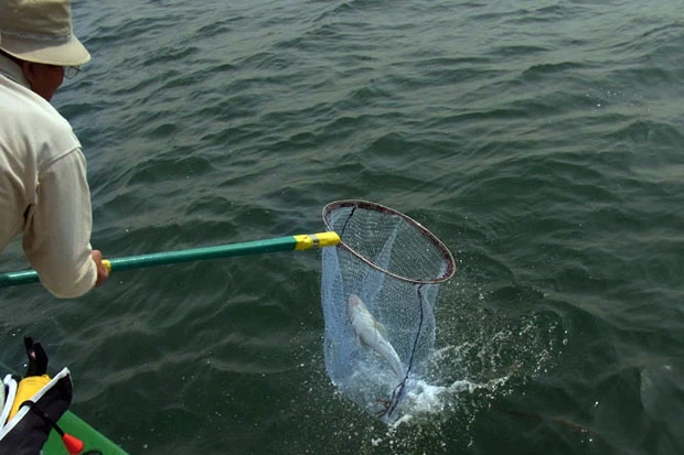 しかし、そうもいかない。船長が傍らで玉網を構えている。やがて、「おおっ! 見えたっ」「本命だっ! マゴチだっ!」と無事、船長の網に収まった。