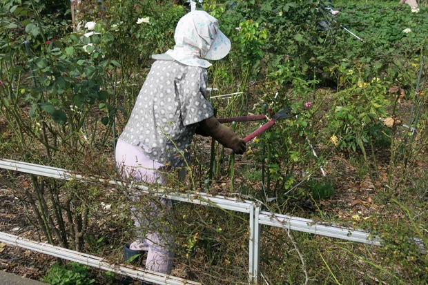 最初に作ったのは、しゃがんで草むしりをしている格好のかかしだった。