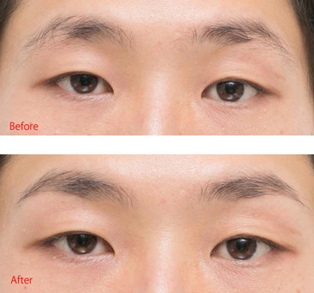 【実例1】生まれてから一度も手を入れたことがない“ぼんやり眉”。元の眉をいかしつつ、ムダ毛をカットして形を整え、薄いところを少しだけ描いた。希望していたスッキリかつキリッとした印象にチェンジし、「いや~、かわるもんですね~」と本人も満足
