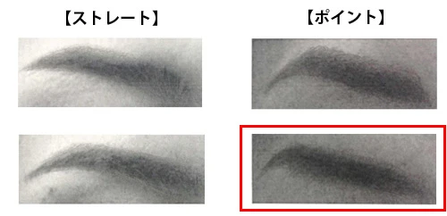 「眉の形は下側のラインで決まります。目元のラインがどちらかというと直線的なので、眉は角をつけてあげると調和してキリッと感が出せます」(早川さん)ということで、ベースのデザインは「ポイント」に決定。上段は角度が出すぎてキツめの印象になってしまうので、ちょっとなだらかな2番目に。