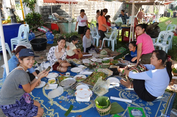 さらに寺を修繕する僧の手元になにやらオレンジの灯りが「え……? マジ? タ、タバコ!?」。こっそりカメラを向けるとこっちを見たので「ヤバイ!」と思ったら、私の顔を見てニヤリと笑った。バンビエン、なかなか面白そうな街だ。