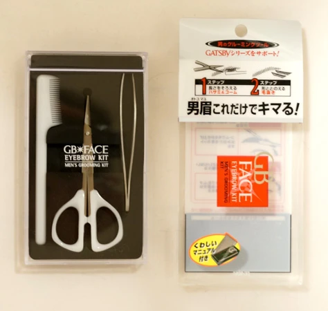 「眉ハサミ GATSBY (ギャツビー) メンズアイブローキット」(マンダム、972円[税込])眉バサミ、眉コーム、毛抜きの、眉ケアに必要なツールをまとめたキット。基本のストレート眉の整え方を詳しく解説したマニュアルつき。ドラッグストアなどで入手可能