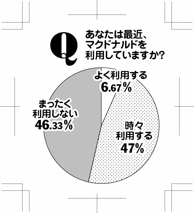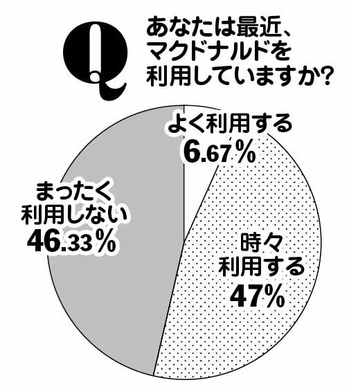 まず、「あなたは最近、マクドナルドを利用していますか?」という質問(詳しい回答結果は別掲のグラフを参照。以下同)。