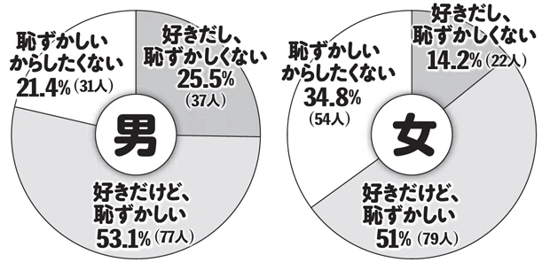 路チュー経験の割合に男女の差はほとんどなかったが、「恥ずかしいからしたくない」は男性が21.4%、女性が約35%。恥ずかしいと思っている女性のほうが多いのはある意味、当然? このあたり、男はわかっておいたほうがよさそうだ。