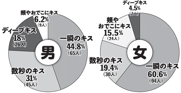 なんと男性の約62%、女性の53%がイエスと回答。相手との最初のチューが、女子でも過半数を超えているのはちょっと意外?