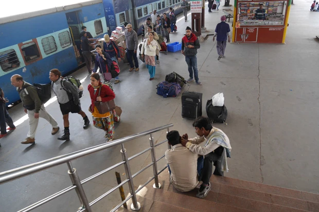 「駅の反対側へはリキシャに乗らないと行けないよ」、「今は選挙をやってるから安宿街には許可証がないと入れないよ。許可証はタダで作れるし、リキシャでたったの10ルピーだから、ほら乗りな」
