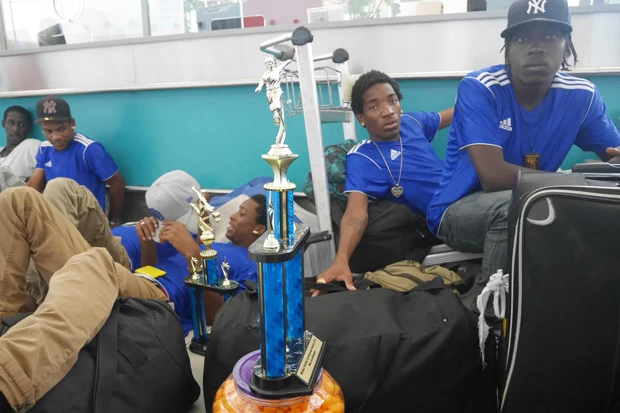 【This week’s BLUE】近隣のセントキッツ島からサッカーの試合に来ていたチーム。写真を撮らせてもらうと「日本行きたいからお金チョーダイ」と言ってきた。カジノのマネーマシーンでもオススメしようか。