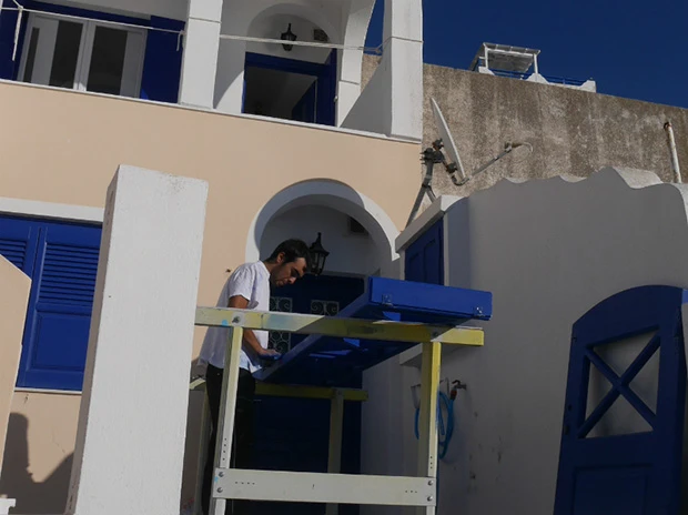 建物が白い理由は、地中海で採れる石灰が材料となっているから。暑い日差しで室内が高温になるのを避けたり、殺菌効果があるのだそう。