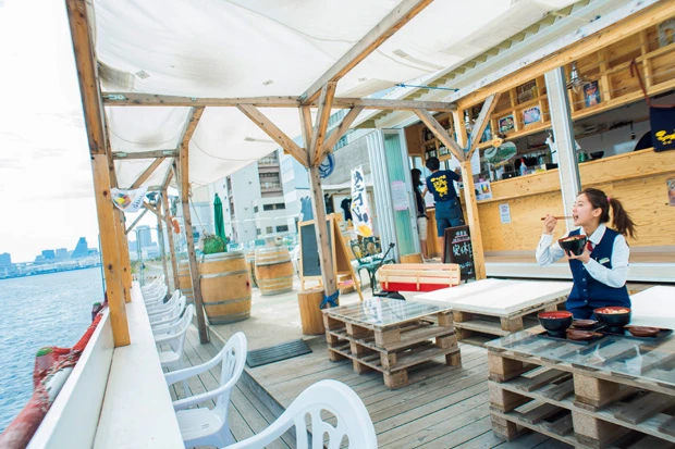 ◆マグロ卸のマグロ丼の店マグロ卸の会社が倉庫横の資材置き場を改築してつくった、オープンテラスのお店です。海を見ながら食べられるので、運転中の気分転換にいいですね。「マグロ丼」はワンコイン! これは漬け丼になっていて、とっても柔らかい。「ステーキ丼」は、オニオンとブラックペッパーで味付けされて、焼き方も中はレアでお肉を食べてるみたい!