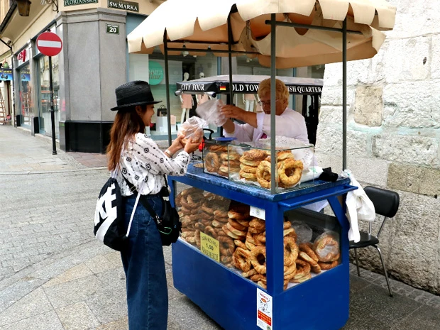 【This week’s BLUE】ポーランド版プレッツェルの屋台。数メートルおきにあって、大体同じようなお店で同じようなおばちゃんが働いている。