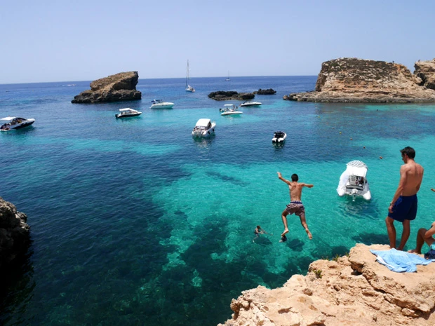 後日、私はバスでマルタ島最北端の港まで行き、本島からボートで10分のコミノ島まで足を延ばした。するとそこには、パアァァァ! 目の前に広がるエメラルドグリーンのラグーン!