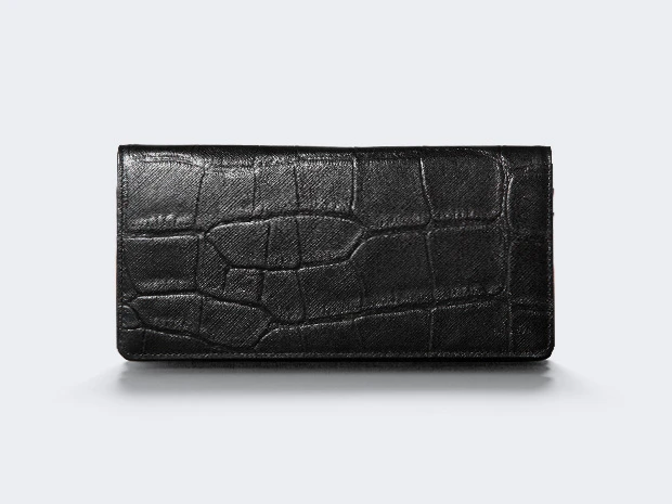 「素材に用いている特殊なクロコの型押しを施したダブルエンボスレザー(型押し皮)が特徴的。さらに、限りなく薄いマチ幅とあいまって、エレガントかつ抜群の上質感を持っている財布です。薄マチの長財布が好きな人にはたまらない逸品になると思いますね。カジュアルシーンでも、ビジネスシーンでも使える上、他の人との違いをさりげなく演出するのにはピッタリではないでしょうか」