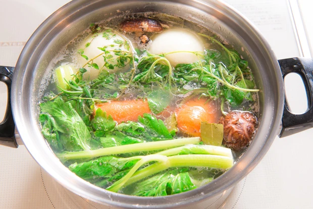 そこで、今回は1度作れば鍋何回分にも使える、ダニエラ 志賀さんの特製レシピ「鶏ガラスープ」で、冬にピッタリの“アンチエイジング鍋”を作ってみた。
