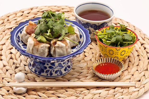 1.冷凍シュウマイは表示通りにレンジで解凍しておく。2.フライパンにサラダ油を多めに熱し、1のシュウマイを入れて揚げ焼きにする。3.器に盛り、スイートチリソース、パクチーを添える。