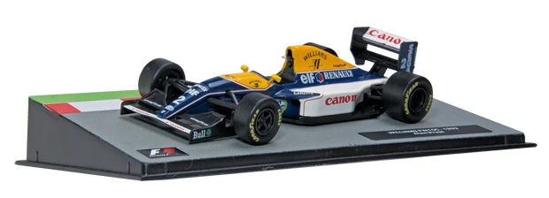 創刊号に付属するマクラーレンホンダMP4/4。1988年にアイルトン・セナが乗車し、年間王者を獲得した。 セナのライバル、アラン・プロストが93年に乗車したウィリアムズFW15C。
