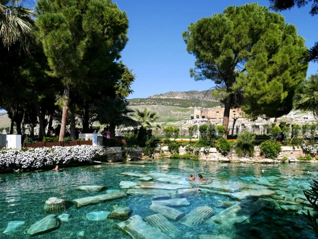 パムッカレとはトルコ西部にある石灰棚(石灰華段丘)の絶景。ローマ帝国の都市ヒエラポリス遺跡とともに世界遺産に登録されている。