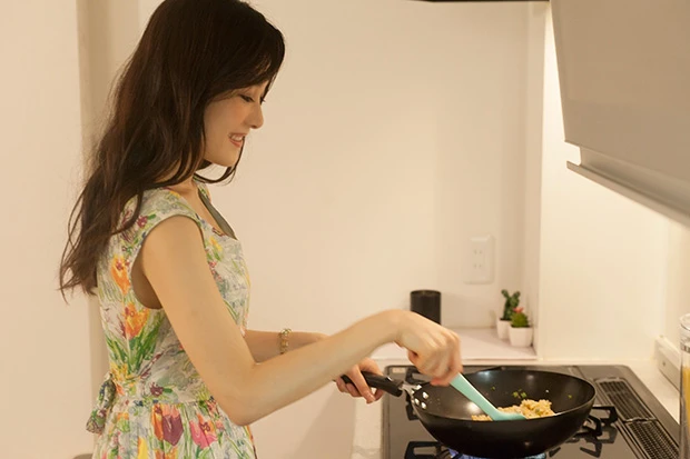 「前にお店で出してくれたじゃない、明太子チャーハン。それをウチで簡単にパスタソースで作ろうと思って」「いいよ、店じゃないんだし…」やっぱ興味なさげで、フライパンに集中する私のほうを見てくれてるんだかいないんだか…。もしかして、まだガイドブック見てる? そんな気になるなら、私と一緒に行きなさいよ~!