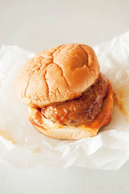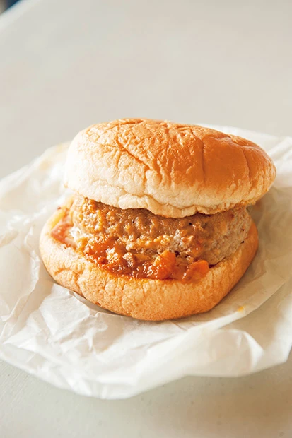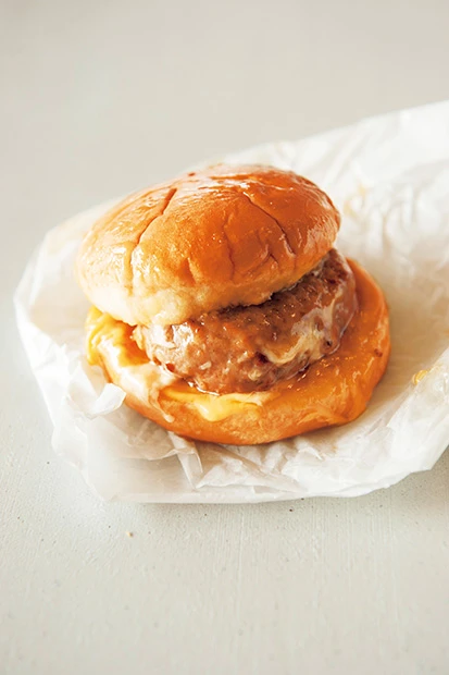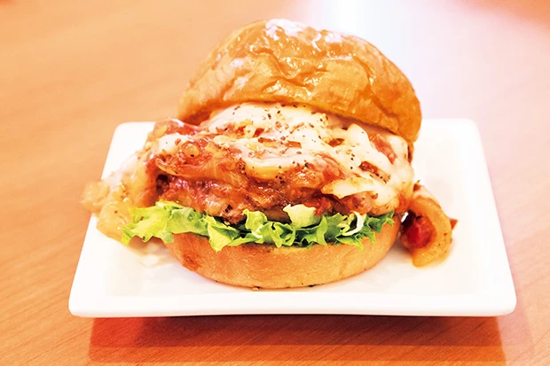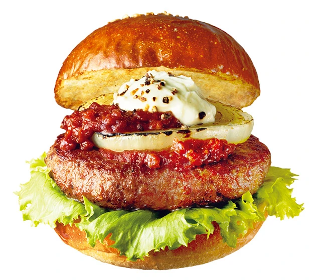 注文を受けてから粗びきミートパティを焼き上げ、店舗で焼いた酒種バンズで挟む本格派。迫力あるビジュアルも魅力。