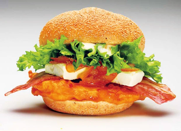 The A&Wオレンジチキンサンド。クリームチーズにオレンジとスイートチリを混ぜたソースが南国感満点。