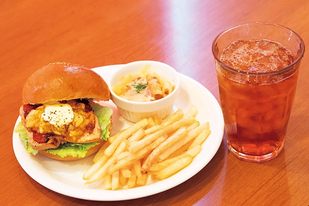 ペッパーポークと濃厚なクリームチーズが特徴の看板バーガー。特殊な機械でくるくるにカットしたカーリーフライも人気!