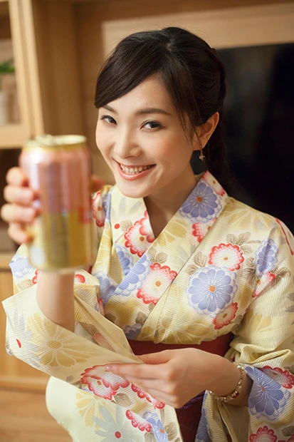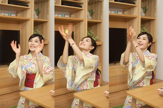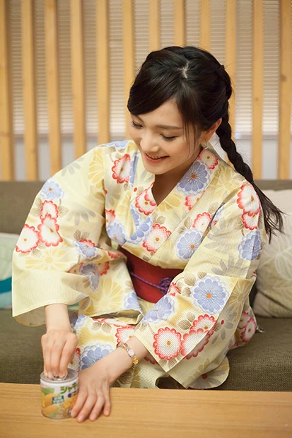 「花火は見れなかったけど、家でゆっくりできるし、飲も? かんぱーい!」浴衣の袖を押さえる所作がなんかCMっぽい? うん、すっげー新鮮!