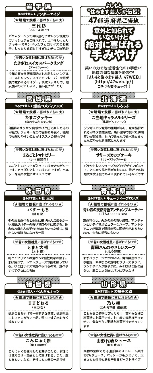 なるほど! というわけで、今回は全国の知っておくべきご当地手みやげを見つけるべく、47都道府県で暮らす「よしもと住みます芸人」たちにアンケート調査を実施!