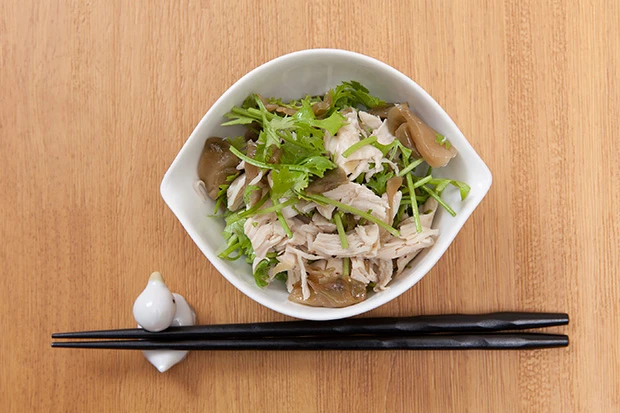 ■恋愛レシピ42 鶏とザーサイのパクチー和え(材料:作りやすい分量)ザーサイ(粗みじん切り)…10g鶏ささみ肉…2本塩こしょう…少々酒…少々パクチー(3㎝長さに切る)…1束ごま油…小さじ2