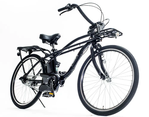 ■BP02(Panasonic)¥131,000(税別)*スタンドはオプション走行距離:ロングモード=74km/オートマチックモード=54km/パワーモード=46kmビーチクルーザータイプの車体はBEAMSとコラボして開発。201 6年、限定300 台の記念モデルとして発売された際には即完売するほど人気に。ワイドなハンドルや大きめのサドルでゆったりした乗り心地だ
