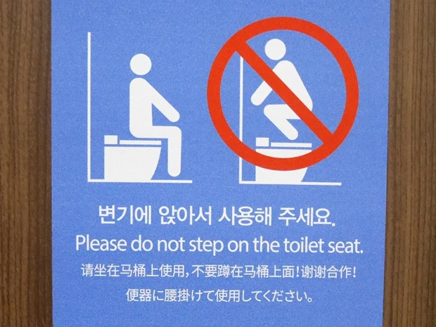 【This week’s BLUE】女子トイレにあった注意書き。こんな座り方する女子はいないと願いたい(笑)。
