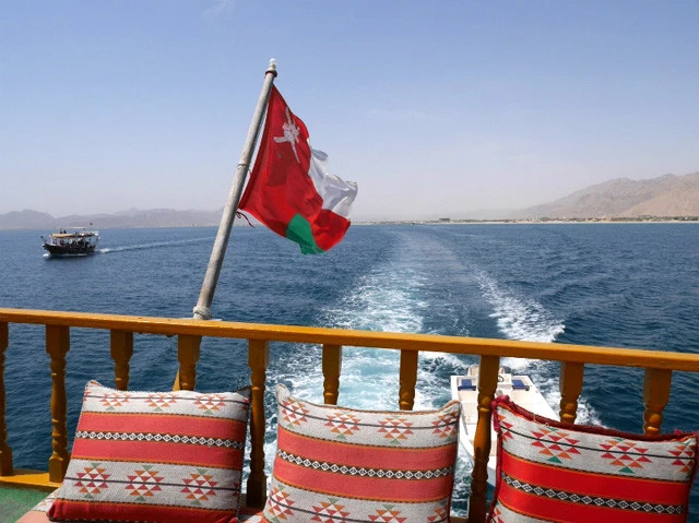 オマーンの港町ディバからは、伝統的な木造帆船"ダウ船"に乗り換え、いよいよクルーズの始まりだ。