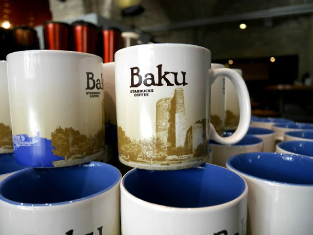 ニザミ通りでスタバ発見! 恒例のご当地マグチェックでは、もちろんバクーデザインがありました。